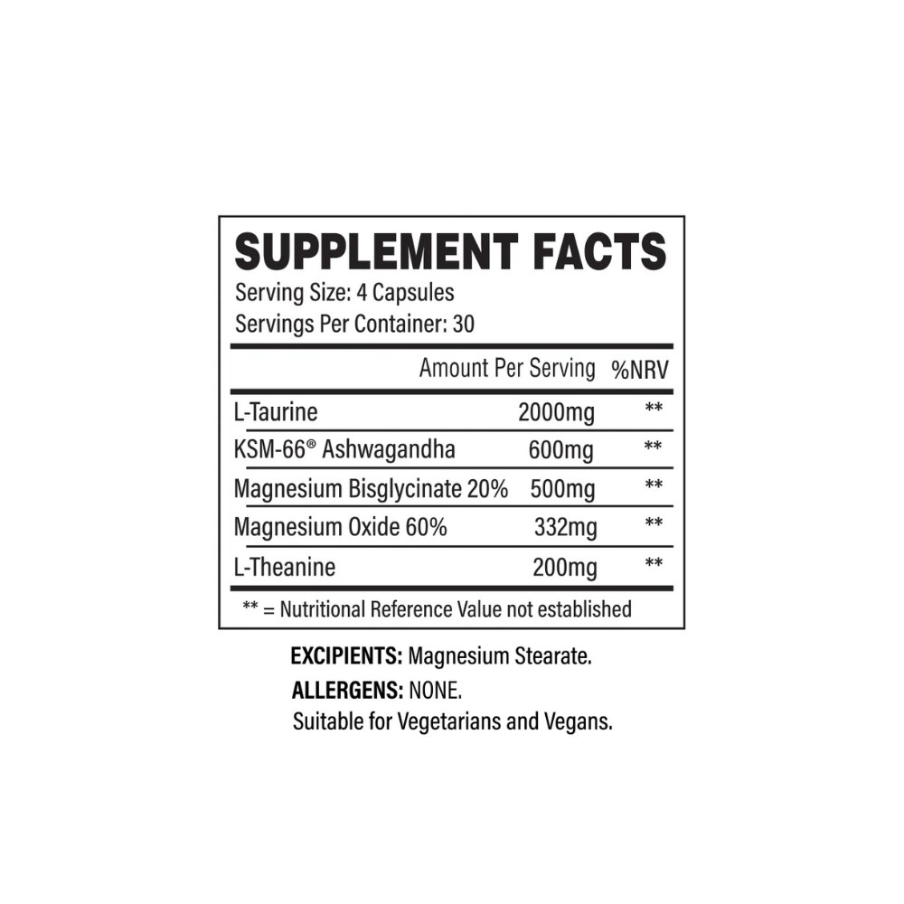 Powered by KSM-66® Ashwagandha, L-Theanine, L-Taurine, and two forms of Magnesium, this advanced formula works synergistically to reduce cortisol, calm the nervous system, and restore balance after intense training.